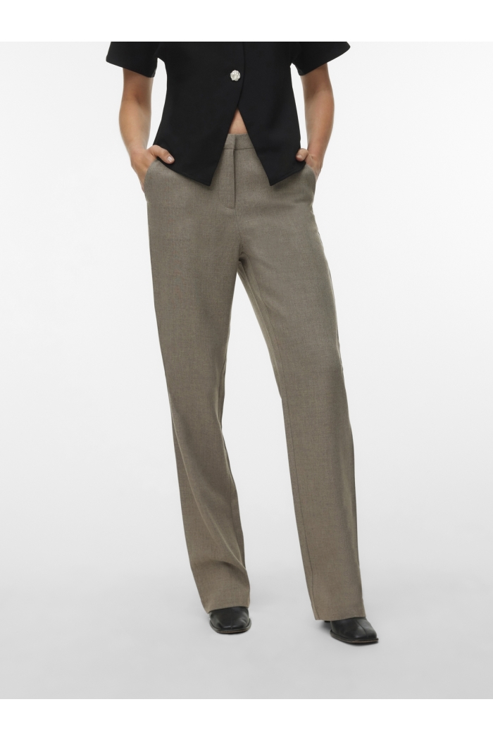 Deze comfortabele dames broek van Vero Moda, de Vero Moda broek moon rock melange, is een veelzijdige keuze voor een verzorgde en moderne outfit. De broek heeft een zachte grijsbeige kleur met een subtiel gemêleerd effect dat zorgt voor een rustige en tijdloze uitstraling. Op de foto’s zie je een model met een nette tailleband en een striksluiting aan de voorkant, waardoor je de pasvorm eenvoudig kunt aanpassen. De pijpen vallen recht en soepel langs je benen en geven de broek een modern silhouet. Aan de zijkanten zitten praktische steekzakken die het ontwerp compleet maken en zorgen voor een nette afwerking. De stof oogt licht en comfortabel, waardoor de broek prettig draagt tijdens verschillende momenten van de dag.